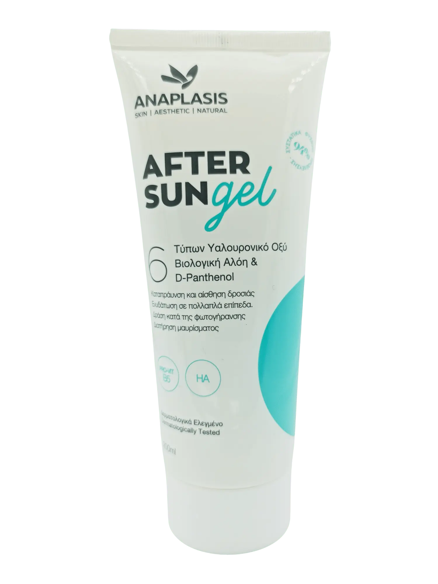 Η έκθεση στον ήλιο μπορεί να αφυδατώσει το δέρμα και να προκαλέσει πρόωρη γήρανση. Το After Sun Gel – Με Υαλουρονικό Οξύ 6 Τύπων, Βιολογική Αλόη και D-Panthenol περιέχει επιλεγμένα ενεργά συστατικά, με ιδιότητες ευεργετικές για το δέρμα. Το Υαλουρονικό Οξύ 6 Τύπων, επιτυγχάνει ταυτόχρονα βαθύτερη ενυδάτωση, εξουδετέρωση των ελευθέρων ριζών και προστασία από την απώλεια υγρασίας. Χαρίζει σφριγηλότητα και ελαστικότητα και βελτιώνει αισθητά την όψη του αφυδατωμένου δέρματος. Η Aloe Vera και η D-Panthenol, γνωστές για τις αναδομητικές τους ιδιότητες, θρέφουν και «ξεδιψούν» την επιδερμίδα. Χάρη στις αντιφλεγμονώδεις, καταπραϋντικές ιδιότητές τους, ηρεμούν την ευαίσθητη επιδερμίδα, αντιμετωπίζοντας ερεθισμούς και ερυθρότητα. Οι φυσικοί ενυδατικοί παράγοντες που περιέχει, συμβάλλουν στην αντιμετώπιση της φθοράς του υδρολιπιδικού φραγμού της επιδερμίδας, η οποία μπορεί να προκληθεί από την έκθεση σε υψηλές θερμοκρασίες και την καθημερινή επαφή με το θαλασσινό αλάτι. Φροντίζει, προστατεύει και ηρεμεί το δέρμα, διατηρώντας το ενυδατωμένο και απαλό και βοηθά στη διατήρηση του μαυρίσματος. Με μεθυστικό άρωμα καλοκαιριού.