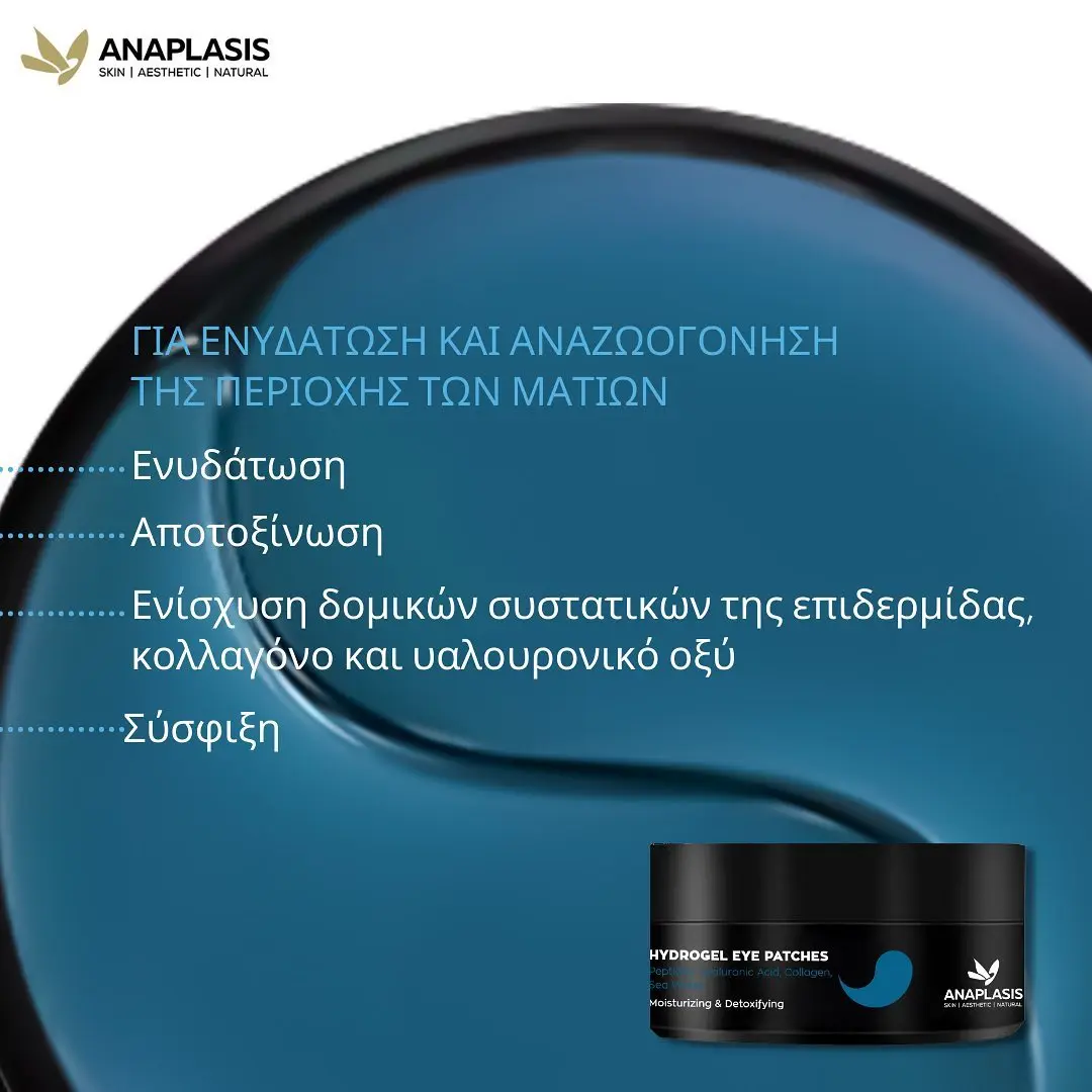 Συσφικτική μάσκα ματιών εξειδικευμένη για την άμεση ενυδάτωση και αποτοξίνωση της περιοχής των ματιών, με πεπτίδια, υαλουρονικό οξύ , κολλαγόνο και θαλασσινό νερό.