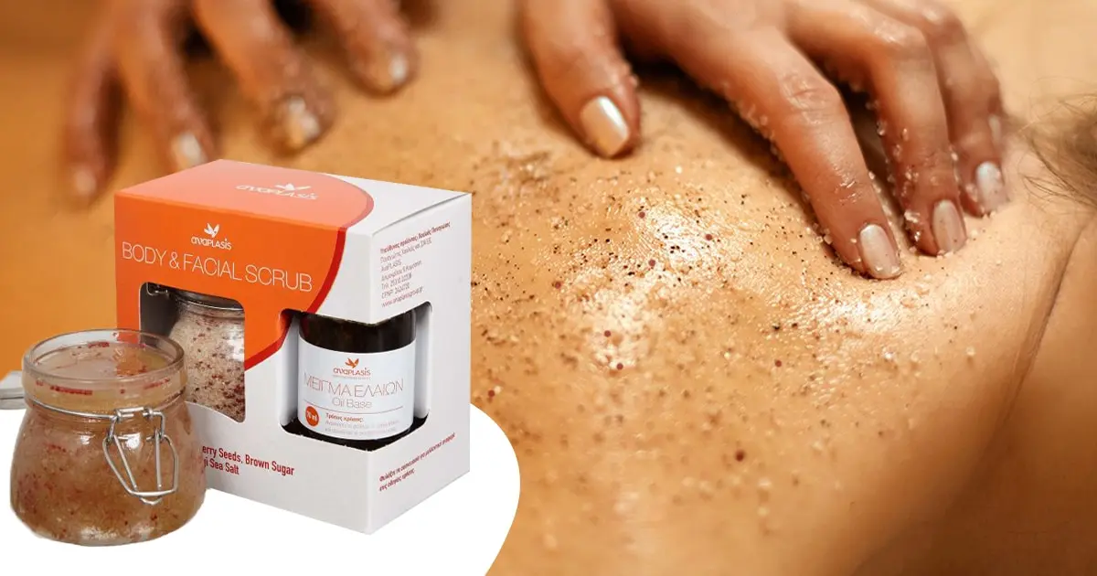 Body & Facial Scrub με Καστανή Ζάχαρη – Ελληνικό Αλάτι Μεσολογγίου & Σπόρους Cranberry (250gr)