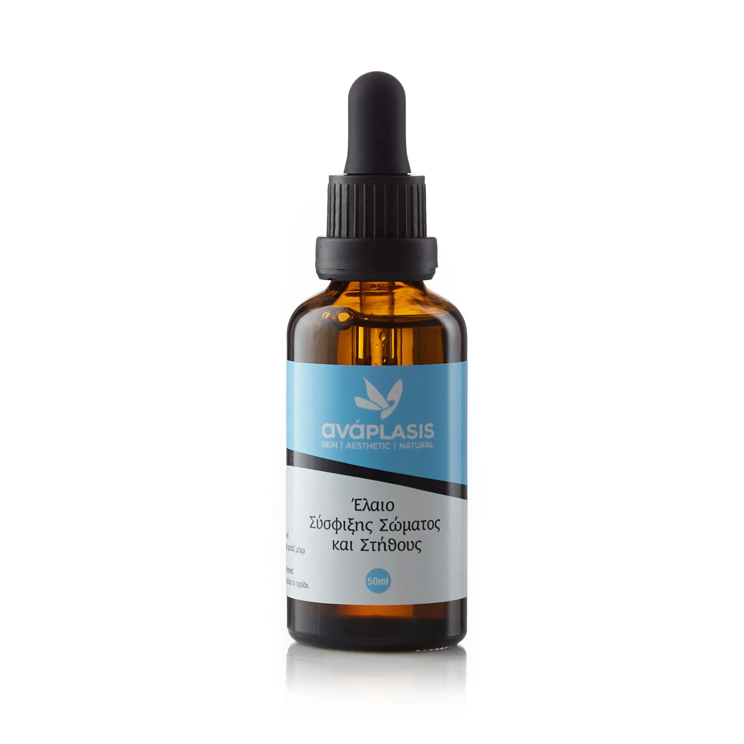 Το Έλαιο Σύσφιξης Σώματος και Στήθους της εταιρίας αναPLASISείναι ένα ειδικό προϊόν περιποίησης του σώματος. Η δραστικότητα του οφείλεται αποκλειστικά στο συνδυασμό των φυτικών ελαίων και των φυσικών δραστικών συστατικών από τα οποία αποτελείται.