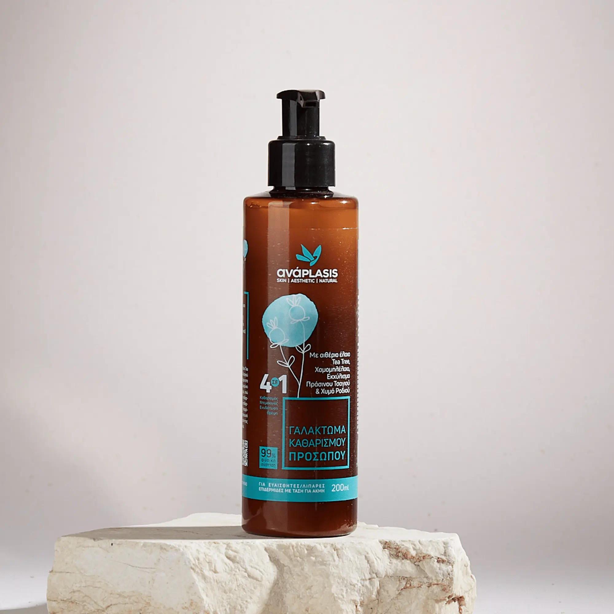 Το Γαλάκτωμα Καθαρισμού - Με αιθέριο έλαιο Tea Tree, Χαμομηλέλαιο, Εκχύλισμα Πράσινου Τσαγιού και Χυμό Ροδιού της εταιρίας αναPLASIS, χάρη στα επιλεγμένα φυσικά συστατικά του, απομακρύνει απαλά ρύπους, μακιγιάζ και περιττό σμήγμα, ενώ ταυτόχρονα αναζωογονεί και τονώνει την επιδερμίδα. Με αιθέριο έλαιο Tea Tree, βοηθά την επιδερμίδα με τάση ακμής απομακρύνοντας τη λιπαρότητα, χωρίς να αφυδατώνει. Αφήνει στο πρόσωπό σας μια όμορφη αίσθηση ηρεμίας, καθαριότητας και φρεσκάδας. Με υπέροχο άρωμα μπανάνα.