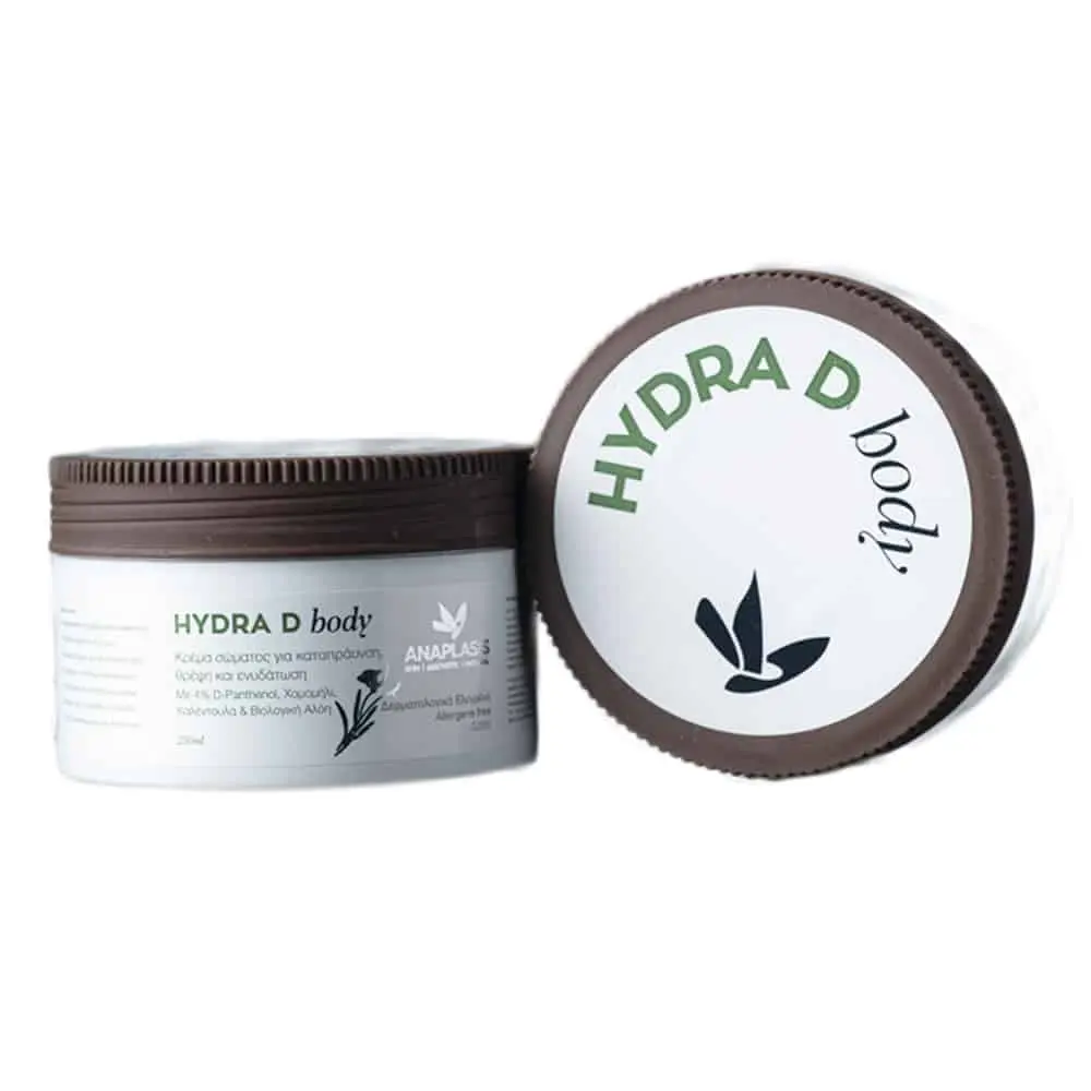 Η Hydra D Body της ANAPLASIS, έχει μελετηθεί και αναπτυχθεί ώστε να παρέχει στην επιδερμίδα την απαραίτητη φροντίδα, για τη γρηγορότερη αποκατάσταση και προστασία του υδρολιπιδικού επιδερμιδικού φραγμού. Με pH 5,5, τη βέλτιστη τιμή για την υγεία της επιδερμίδας, βοηθά στη διατήρηση της άμυνάς της απέναντι σε μολύνσεις και ερεθισμούς.