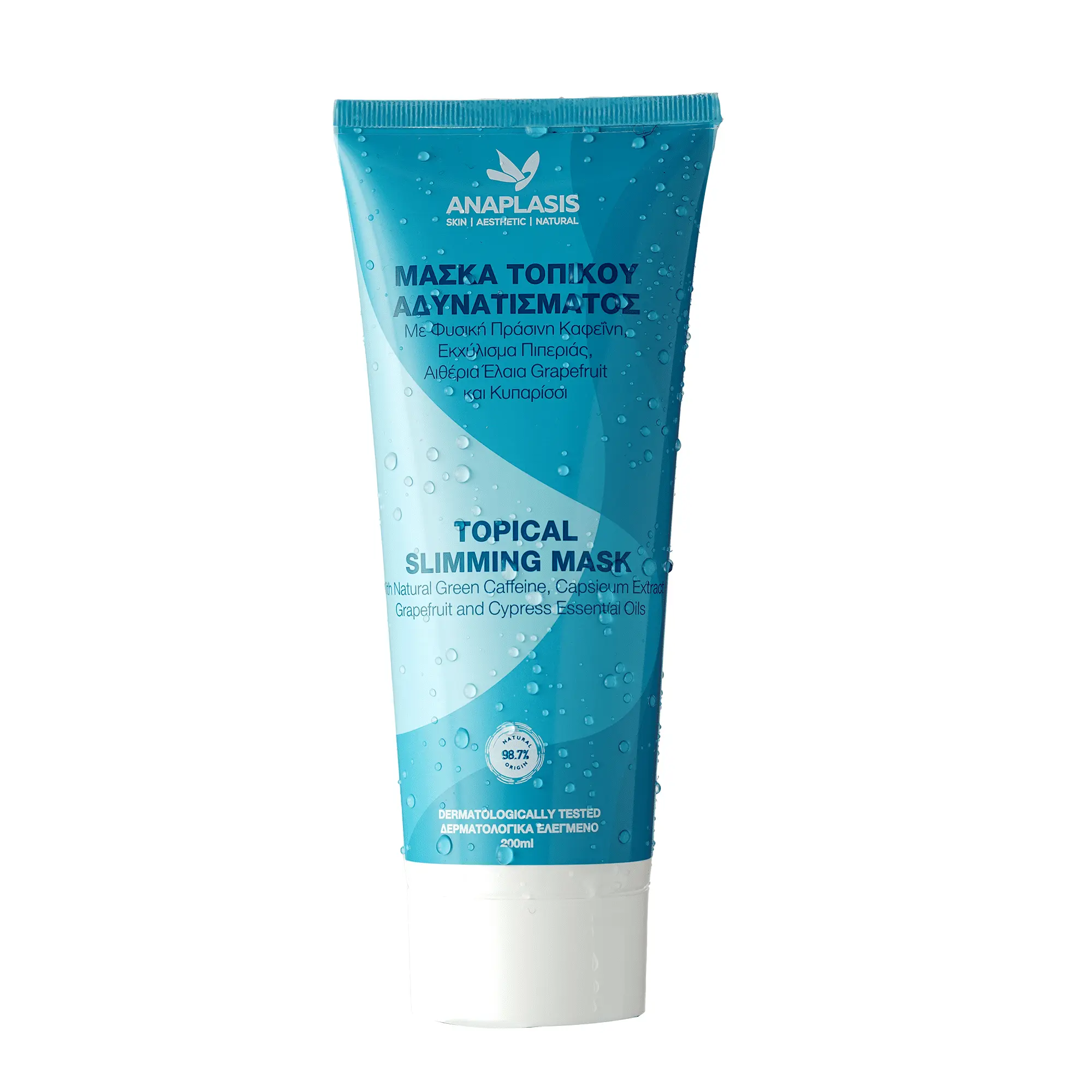Με ενεργό συστατικό την πράσινη φυσική καφεΐνη, η μάσκα τοπικού αδυνατίσματος μειώνει τον αριθμό και το μέγεθος των λιπωδών κυττάρων στο λιπώδη ιστό και περιορίζει το σχηματισμό νέων.