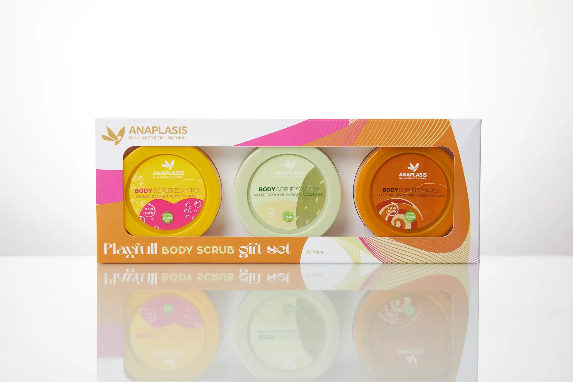 Λείανση, απολέπιση και μεταξένια απαλότητα, με την παιχνιδιάρικη τριάδα body scrub για το σώμα.