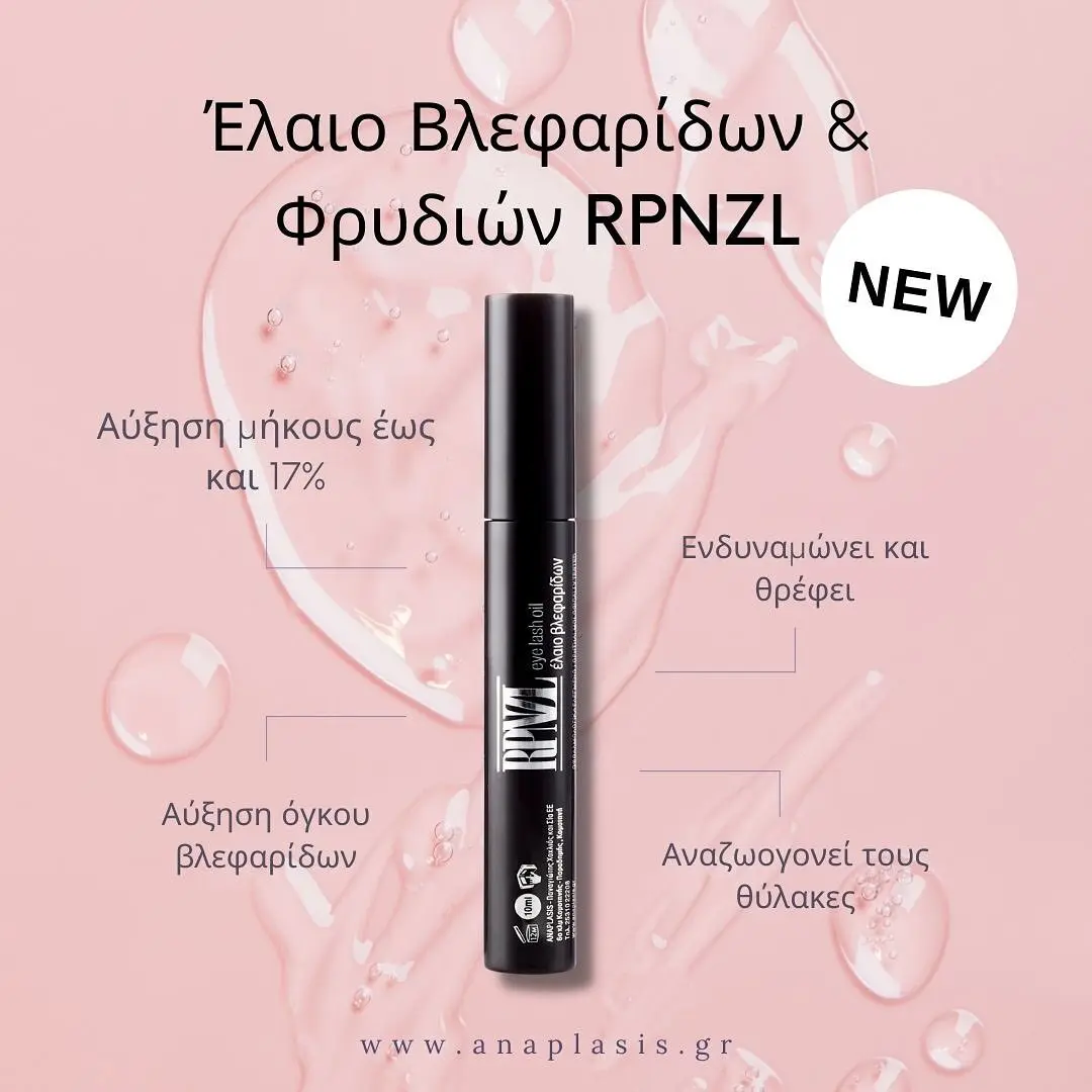 Οι βλεφαρίδες, αλλά και τα φρύδια, καθημερινά μπορεί να επιβαρύνονται από το καθημερινό μακιγιάζ, την τριβή, τον ελλιπή καθαρισμό και άλλες πρακτικές καλλωπισμού. Το Έλαιο Βλεφαρίδων & Φρυδιών RPNZL – Με Καστορέλαιο, Ginseng, Κερατίνη Βιταμίνες Ε & D–Panthenol της ANAPLASIS είναι ένα ειδικό προϊόν περιποίησης, το οποίο βοηθά στην αποκατάσταση των αποδυναμωμένων βλεφαρίδων. Η δραστικότητά του οφείλεται αποκλειστικά στο συνδυασμό φυτικών ελαίων, εκχυλισμάτων και βιταμινών από τα οποία αποτελείται.
